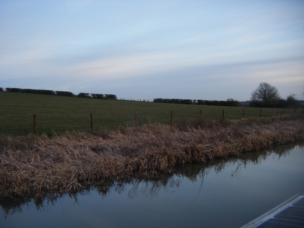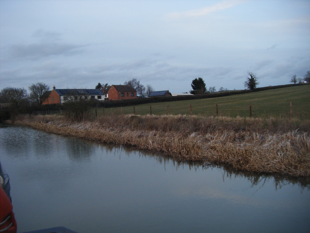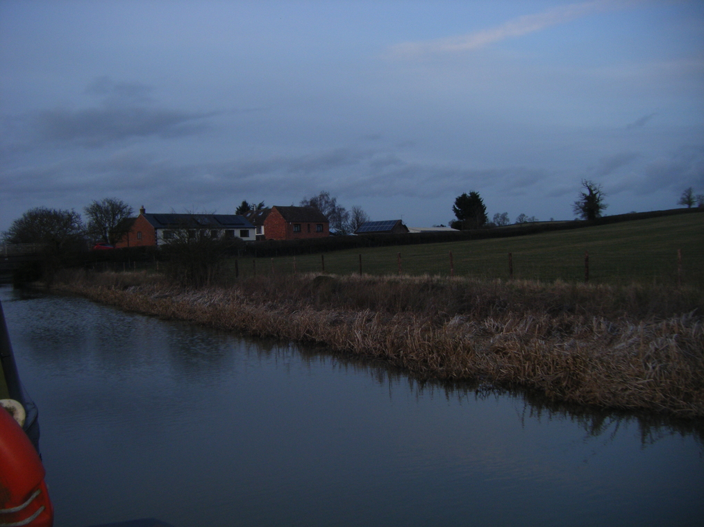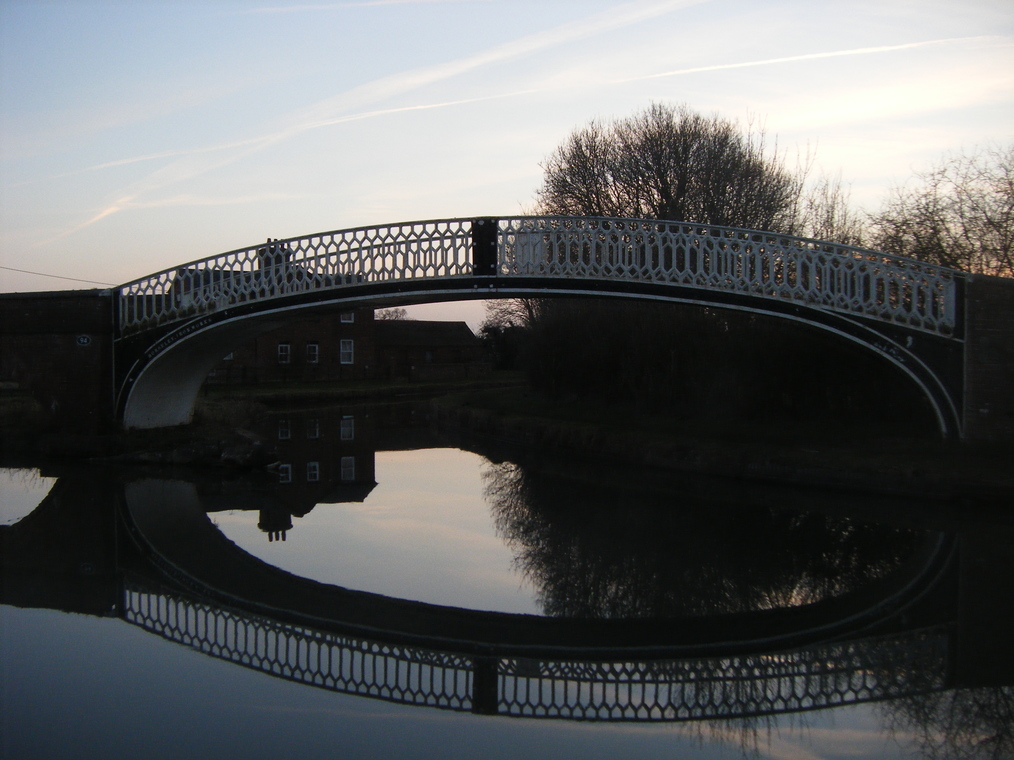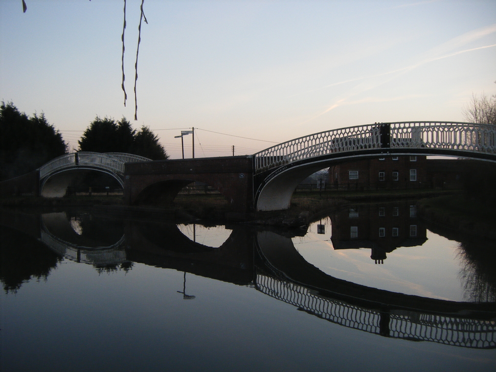 Straddling the canal.